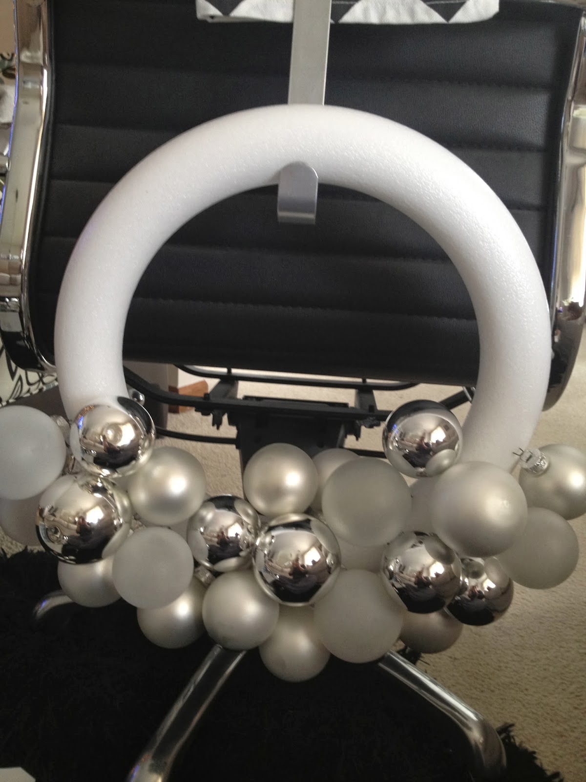 I hopped on the Christmas Ornament Wreath train years ago when they became really popular, thank you Pinterest. I tried a handful of different methods (the wire hanger, the pool noodle, etc), and none of them worked. Then I had an epiphany…